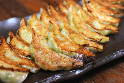 当店のうす皮餃子の特徴は、薄めの皮で小さめの焼き面はカリッと、中身の餡は野菜たっぷりのジューシーな餃子で、たれ無しでも美味しく召し上がっていただけるように仕上げており、小さなお子様から年配の方まで楽しんで頂けるやさしい餃子です。